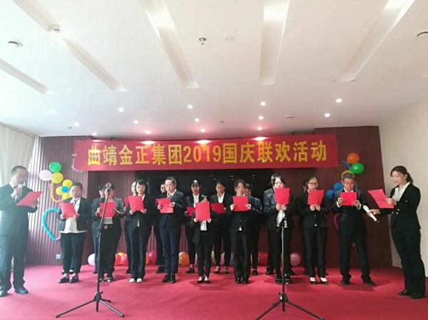 為慶祝新中國(guó)成立70周年,豐富集團(tuán)公司企業(yè)文化內(nèi)涵,激勵(lì)公司全員沿著新征程,朝著新目標(biāo)奮進(jìn),豐富企業(yè)文化生活,金正集團(tuán)全員以“建國(guó)70周年聯(lián)歡活動(dòng)”為主題在辦公樓多功能廳開(kāi)展了2019國(guó)慶聯(lián)歡活動(dòng)。