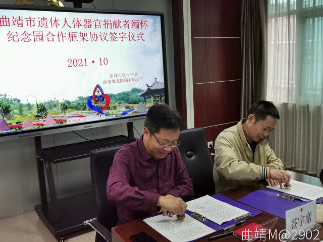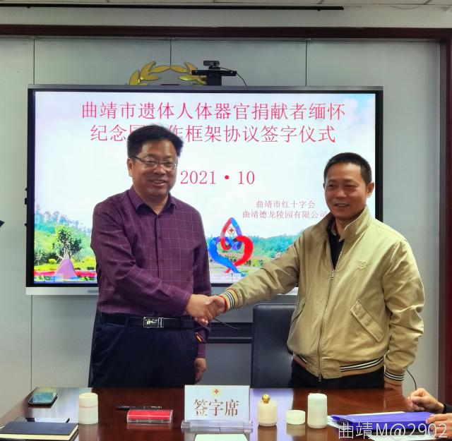 10月13日,曲靖市紅十字會舉行曲靖市遺體人體器官捐獻(xiàn)者緬懷紀(jì)念園項目建設(shè)簽約儀式,曲靖市紅十字會與曲靖德龍陵園有限公司正式簽訂了項目建設(shè)協(xié)議書。該紀(jì)念園的建成是我市首個,云南省第五個遺體人體器官捐獻(xiàn)者紀(jì)念園。市紅十字會干部職工、志愿者代表,曲靖德龍陵園有限公司董事長,總經(jīng)理參加簽約儀式。