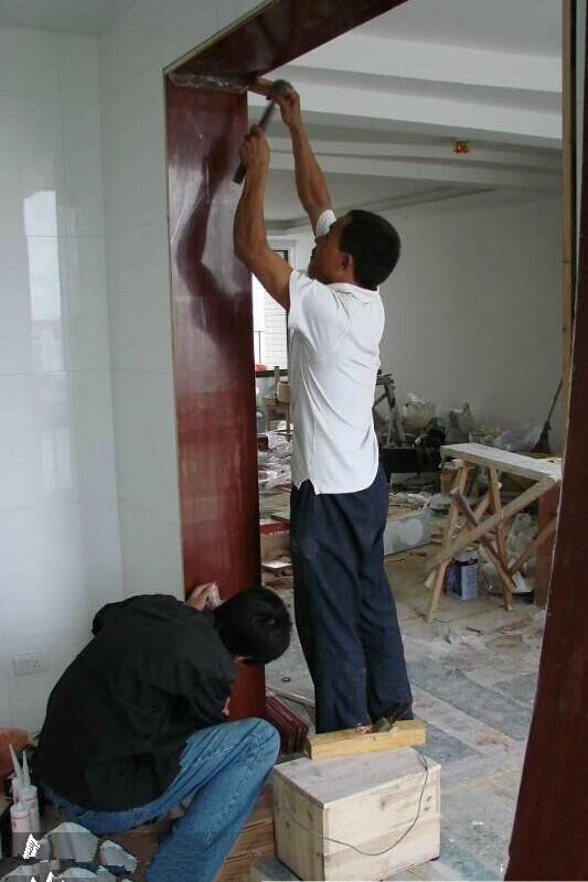 1、過門石、大理石窗臺(tái)的安裝。過門石的安裝可以和鋪地磚一起完成,也可以在鋪地磚之后,大理石窗臺(tái)的安裝一般在窗套做好之后,安裝大理石的工人會(huì)準(zhǔn)備玻璃膠,順手就把大理石和窗套用玻璃膠封住了。